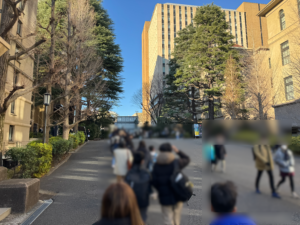 集合8:30大学につくとなんと大行列。ここから15号館まで並んでるらしい。次男が「うわーすごい人」とつぶやいている。この入試の雰囲気を感じてくれたなら今日はもうそれでいいぐらい。