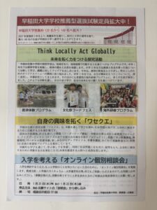 1/17の合格発表の翌日、午前中に早稲田佐賀から速達が届いた。手続き書類などが入ってることだろう。