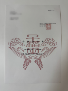 さて、届いた書類です。不合格だった長男の時は「不合格通知書」がペライチだけだったので、今回は重みと重さが違いました。