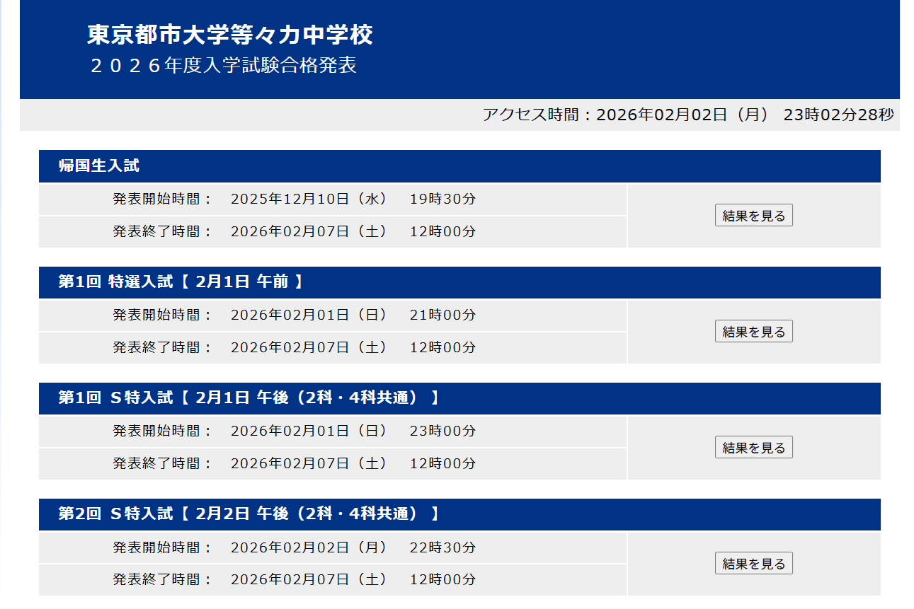 等々力のサイト。23時だと思ってたら、22時半発表だった。志望度が高くなかったとはいえ、そういうところが脇甘くてよくないなと思う。次男君はもう寝てるので、妻と二人で確認する。