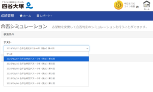 「成績管理」の中に「合否シミュレーション」があります。ここで過去の合不合のテストを選びます。