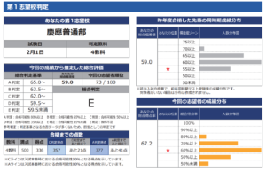 前回から1.3ポイント下降で偏差値59.0。これで、後期過去4回の成績が、